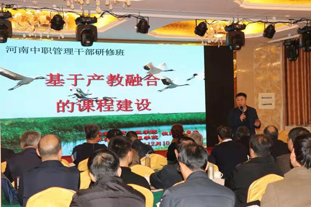 为贯彻落实《国家职业教育改革实施方案》,12月9日-14日,河南省教育厅举办2019年度中等职业教育管理人员研修班。学校理事长曹勇安教授应邀为研修班作《基于产教融合的课程建设》专题讲座,来自河南省各省辖市、省直管县(市)教育局的分管职业教育与成人教育工作负责人、各省属中等职业学校校长共100人聆听讲座。